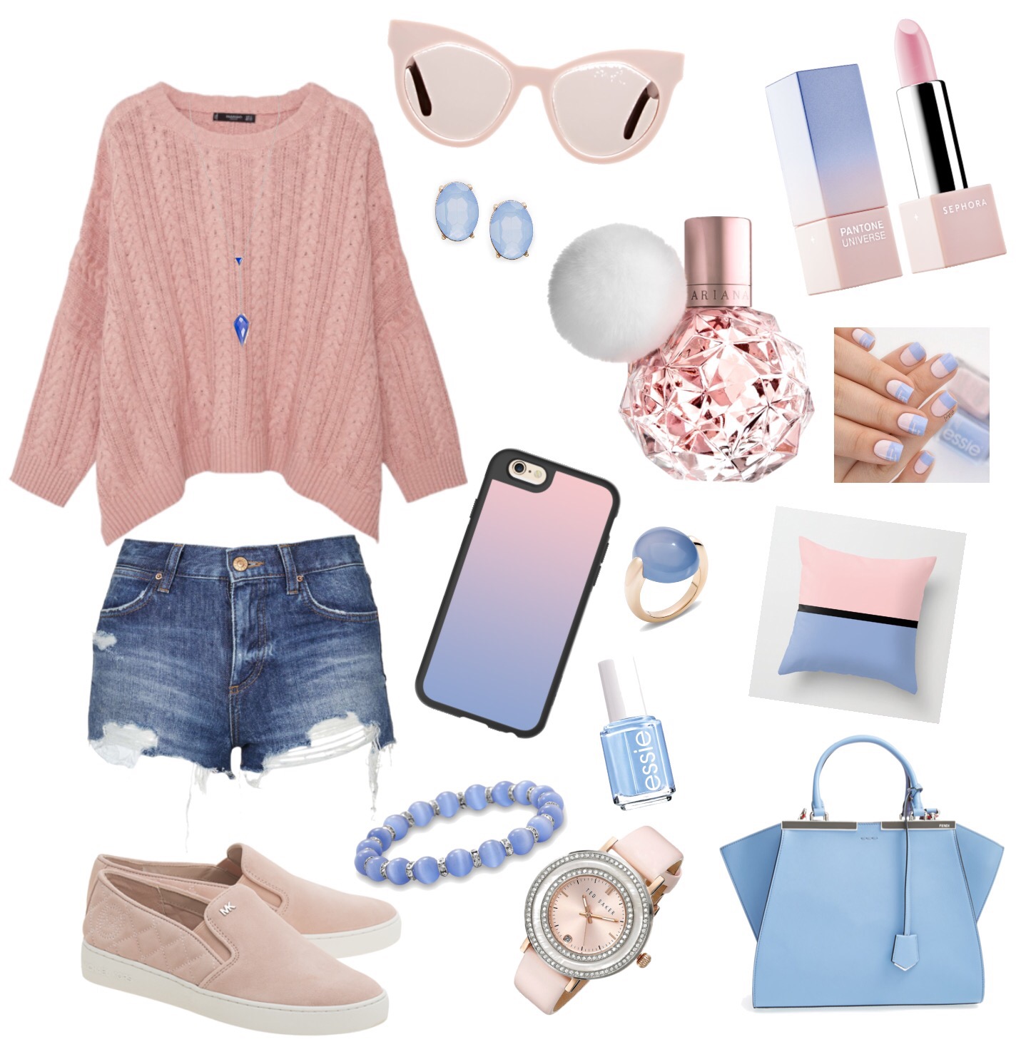 Elk jaar kiest Pantone de kleur(en) van het jaar. In 2015 was dit marsala, dit jaar zijn het ROSE QUARTZ en SERENITY BLAUW. Persoonlijk vind ik deze 2 kleuren erg leuk en ze zijn ook leuk te combineren. Roze en blauw samen is misschien wat gewaagd, maar doordat rose quartz zo’n zachte kleur is, vind ik het best kunnen. Ik ben allesbehalve een expert, dus het kan zijn dat het ééécht niet samen kan, maar smaken verschillen. Op het moment zijn deze twee kleuren overal te vinden: als nagellak, schoenen, telefoonhoesjes, sieraden, jassen, tassen… Om eerlijk te zijn let ik nooit zo heel erg op de kleuren in mijn kleding, maar ik vind het wel leuk om ermee te spelen. Dat doe ik met de app Polyvore. Hiermee kun je collages maken (zoals de afbeelding hierboven) met allemaal items die jij leuk vindt. Én je wordt meteen doorverwezen naar de website, zodat je je favorieten meteen kunt bestellen als je dat zou willen. Ik heb een collage gemaakt met de kleuren van het jaar, ter inspiratie. Wat vind jij van de kleuren rose quartz en serenity blauw?